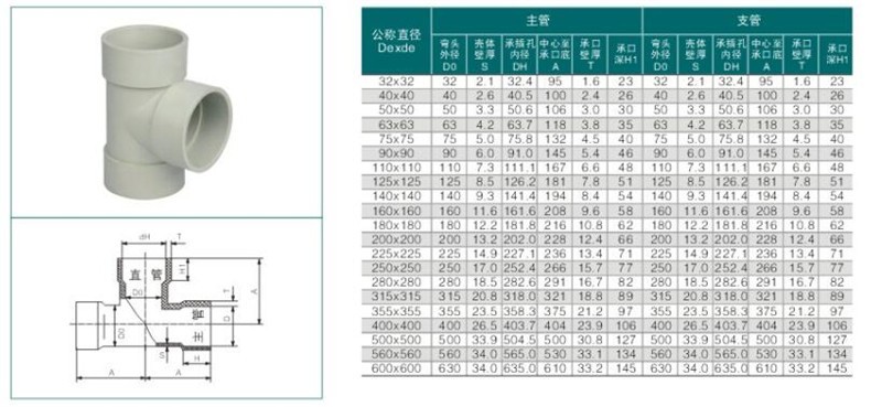 pph承插三通其设计新颖,结构合理,工艺先进,采取一次性挤出成型,产品具有强度高,耐腐蚀,气密性好,使用寿命长,安装维修方便等特点,是使用很方便的一种PPH管件。