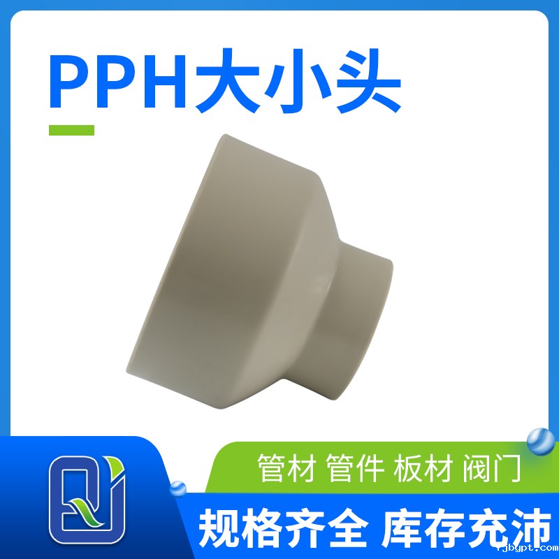pph大小头采用PPH专用材料生产,产品硬度高、刚性好、弹性模量高、耐温高。产品广泛应用于冶金、电子、化工、医药、环保、等领域。 PPH是一种高分子量,低熔流率的均聚聚丙烯,它经过β改性具有细腻的结晶结构,使它即使在低温下也有优异的抗冲击强度,增加了静液压强度,增进了耐化学品性能。根据PPH材料的特性,将PPH管道和板材制作为耐蚀设备广泛应用于化工、冶金和电子等领域。